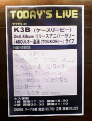 K3B(ケースリービー)のLive(2部)を見てきました。