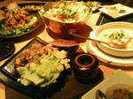 ショートパスタ、サラダ、アラカルトなどを食べながら、