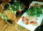 奥様の手料理とビール&ワインを戴きながら