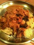 私はベンガルチキンカレー、高菜のサグ、アイスチャイを選択。