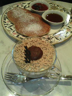 私はモンブランを、友達はソバ粉パンケーキを注文